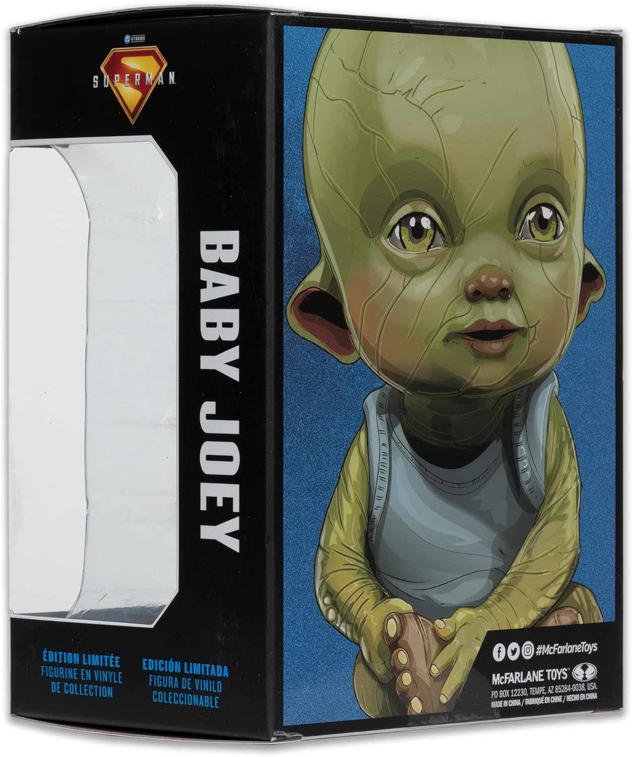 The McFarlane Toys Baby Joey Limited Edition Collector Vinyl Figure is a 4.5-inch collectible inspired by the upcoming Superman movie. This unique figure is believed to depict "Baby Joey," a new or reimagined character possibly tied to Superman’s early life or origin story. As part of a limited edition release, it is expected to become a highly sought-after item for collectors, especially those interested in rare or debut characters.