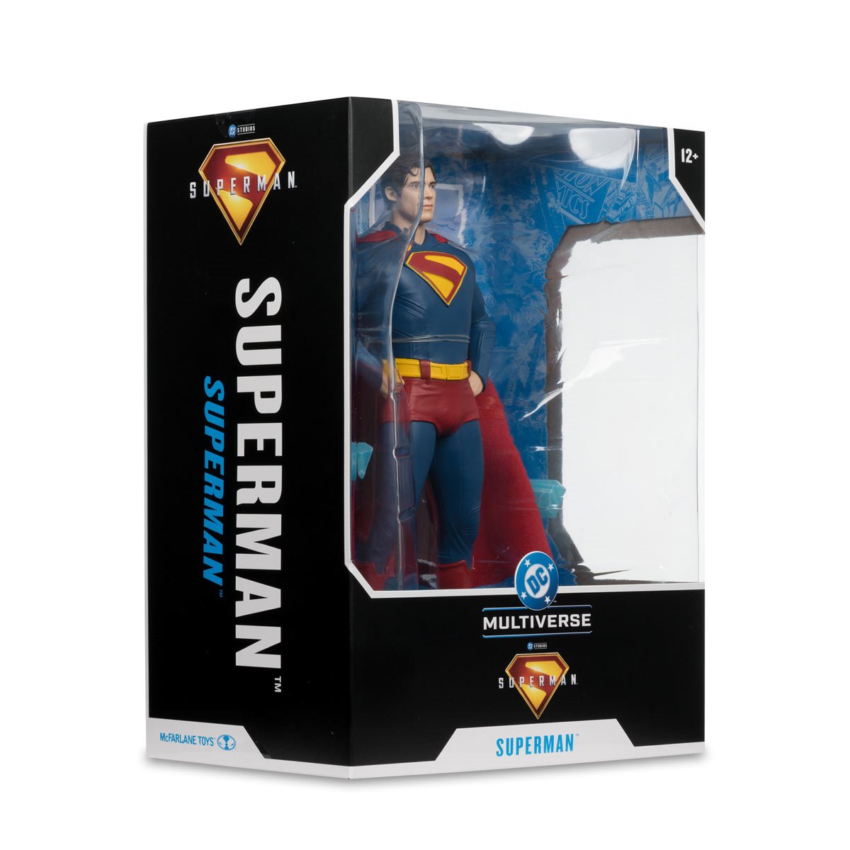 The DC Multiverse Superman Movie Superman 1:6 Scale Posed Figure has amazing likeness and details from the movie. This 1:6 scale figure is incredibly detailed and is based on the character's appearance in the Superman film from DC studios! Superman includes a wired soft goods cape and a detailed environmental base. Also included is a collectible art card with character artwork on the front and a character biography on the back.