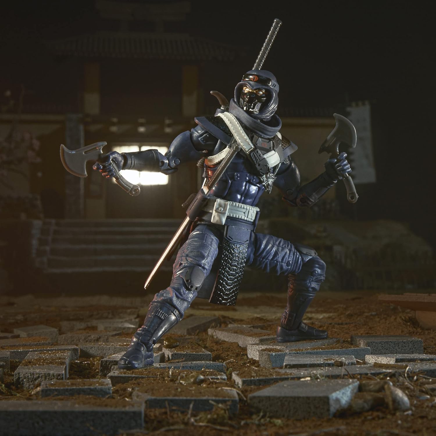 G.I. Joe is a highly skilled, on-demand, special operations force of men and women from around the globe. These extraordinarily talented heroes are selected for their elite abilities and tasked with defending the world from Cobra, a ruthless criminal organization bent on total domination. With unwavering courage and steely determination, the brave members of G.I. Joe are prepared to seek out Cobra in any environment on the planet. From hostile jungles to ice-clad arctic peaks…wherever there’s trouble, G.I. Joe is there. These Blue Ninjas figures come ready for action, with multiple points of articulation for high poseability and 16 character-inspired accessories including an arsenal of ninja weapons and alternate heads wearing Oni and Kitsune masks; plus a footlocker to stow all their gear! And with custom artwork by Billy Christian, the G.I. Joe Classified Series Blue Ninjas 2 Pack will make a mark on shelves.