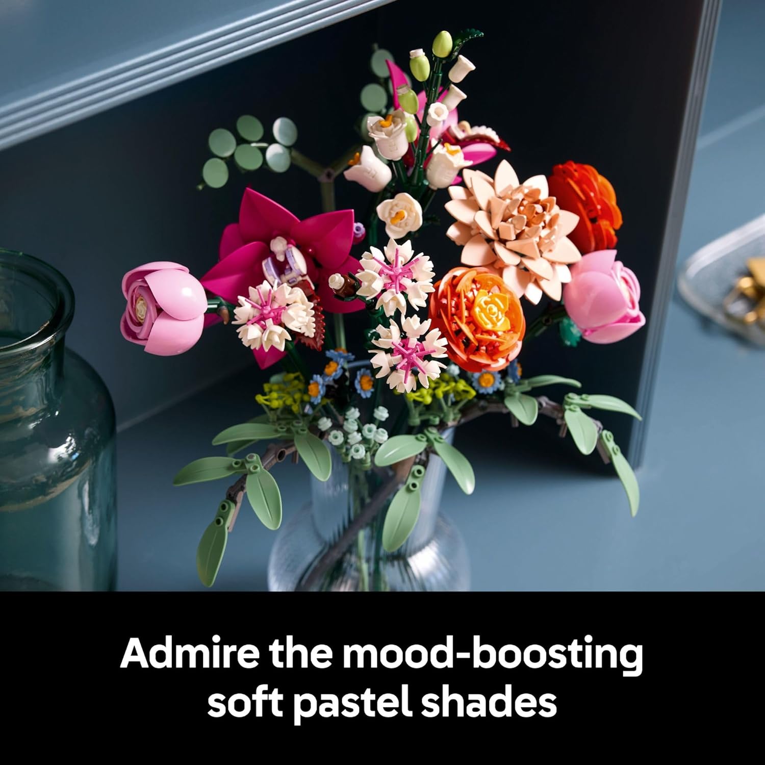 LEGO Botanicals Pretty Pink Flower Bouquet Building Set - Artificial Flowers Centerpieces for Home Decor