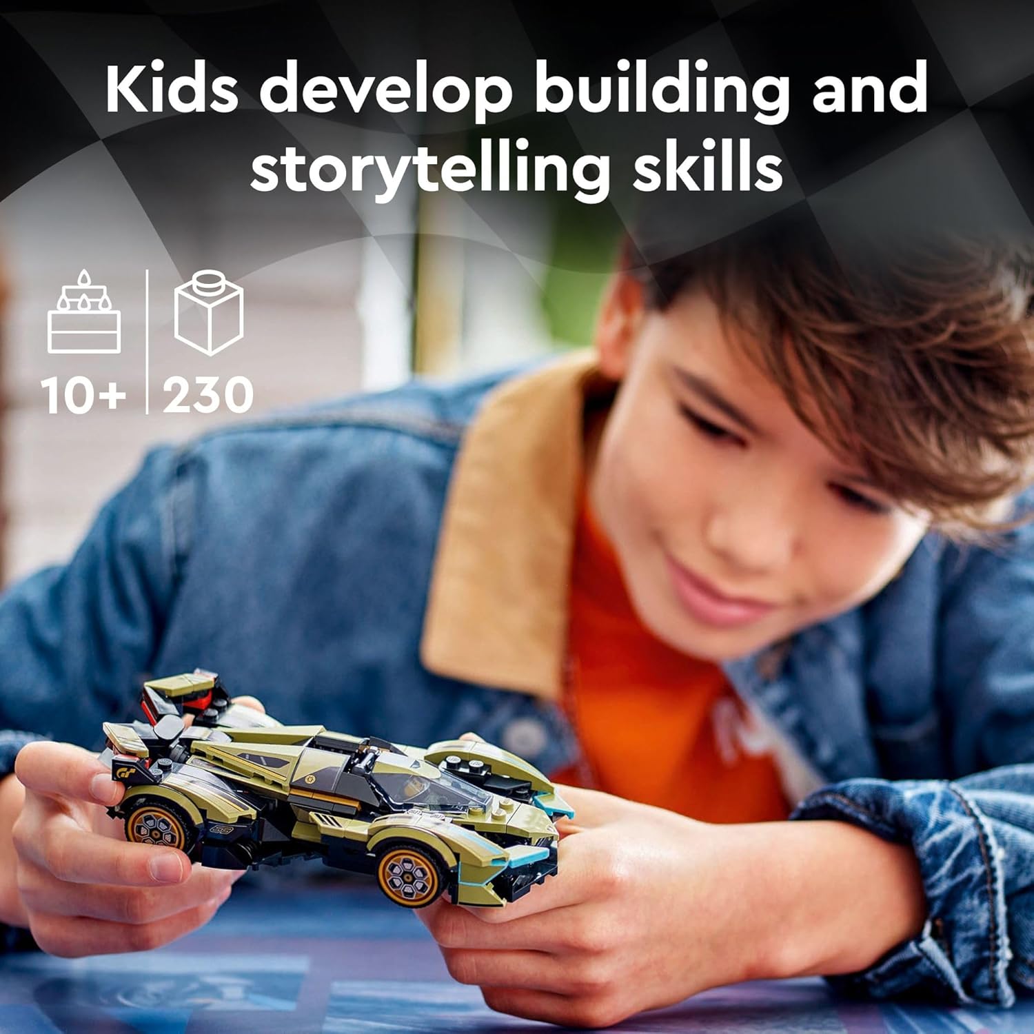Boys and girls ages 10 and up can collect, build, play with and display this incredible LEGO Speed Champions Lamborghini Lambo V12 Vision GT Super Car (76923) vehicle toy. The futuristic Lamborghini car toy for kids and gaming fans includes many unique design details from the iconic virtual model featured in the Gran Turismo video game series. The LEGO F1 toy car includes the model’s famously sharp bodywork, a cockpit that opens by lifting the windshield and hood, a split rear wing, hexagon details on the wheels’ rims, dual tailpipes, Gran Turismo logos and Y-shaped taillights. The collectible Formula 1 car model also comes with a driver minifigure with a helmet so kids and gaming fans can stage races. LEGO Speed Champions building sets let kids and passionate car fans build replicas of some of the world’s most iconic vehicles. Each car playset can be created using printed building instructions or the LEGO Builder app, which guides you and your kid on an easy and intuitive digital building adventure. Contains 230 pieces.