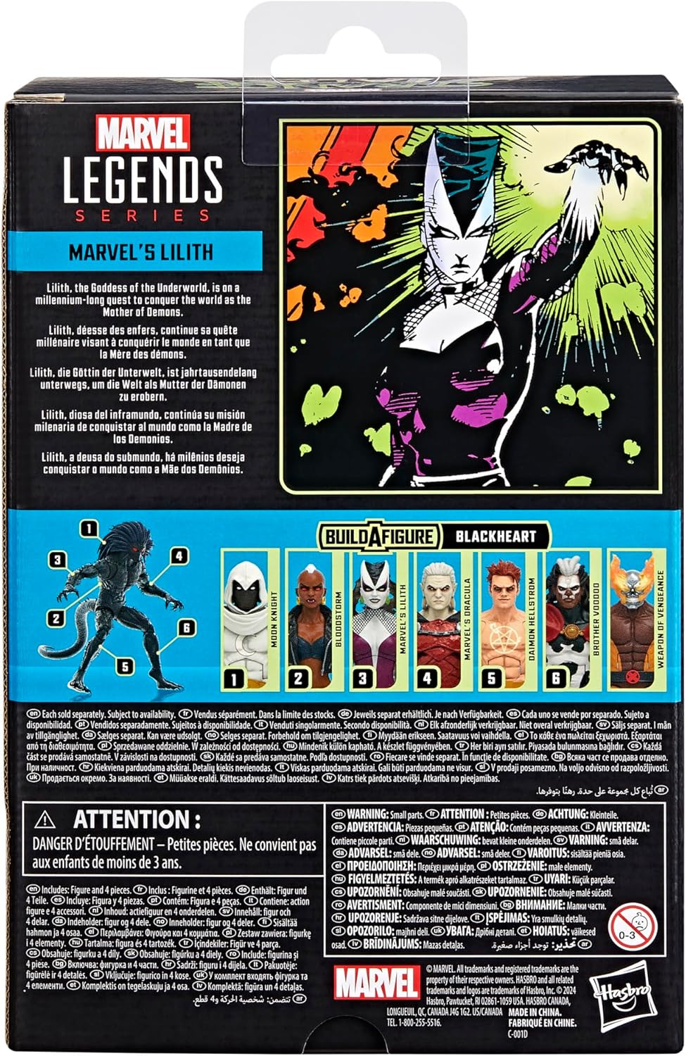 Bring the excitement and wonder of the Marvel Universe to your collection with Hasbro Marvel Legends Marvel's Lilith figure! This collectible 6-inch scale Marvel figure is detailed to look like the character from Ghost Rider and other Marvel comics. Marvel's Lilith Marvel Legends figure is fully articulated with premium design and poseable head, arms, and legs. Marvel action figure set comes with 2 accessories and 2 Blackheart Build-A-Figure pieces. Look for Moon Knight, Bloodstorm, Marvel's Dracula, Daimon Hellstrom, and Brother Voodoo to complete the additional figure (Each sold separately. Subject to availability). Hasbro Marvel action figures' 6 inch scale make them great for posing and displaying in fans' collections. Reimagine Marvel comics-inspired scenes on your shelf with Marvel Legends action figures. Copyright 2024 MARVEL. Hasbro and all related terms are trademarks of Hasbro.