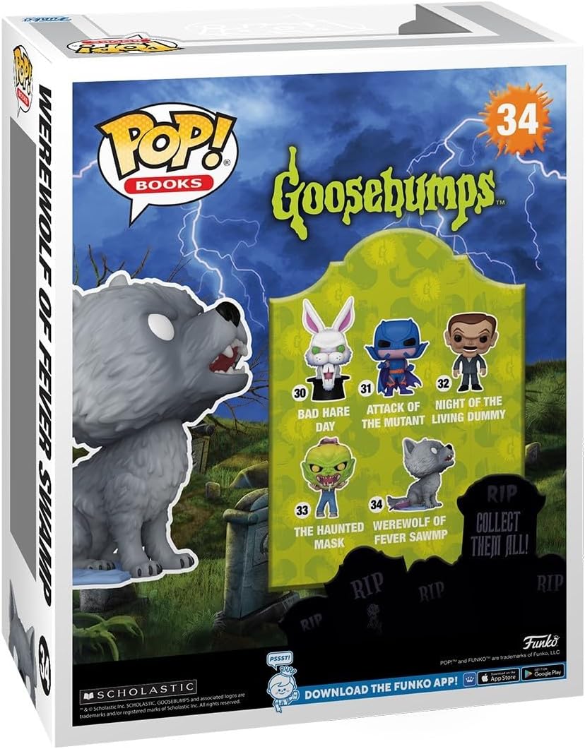 Unleash your inner beast with the Pop! Book Cover Werewolf of Fever Swamp! Enjoy frightful thrills when this shapeshifter leaps straight out of R. L. Stine’s Goosebumps® and into your Pop! Books collection! Pop! figure is adhered to the base and backdrop to ensure display integrity. Approximate dimensions of protective case: 6.75” W x 8.55” H x 3” D.