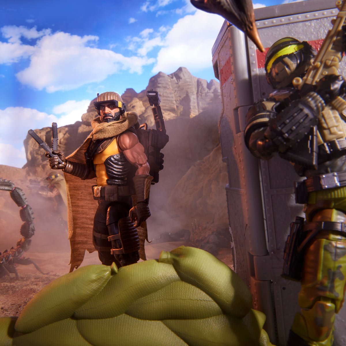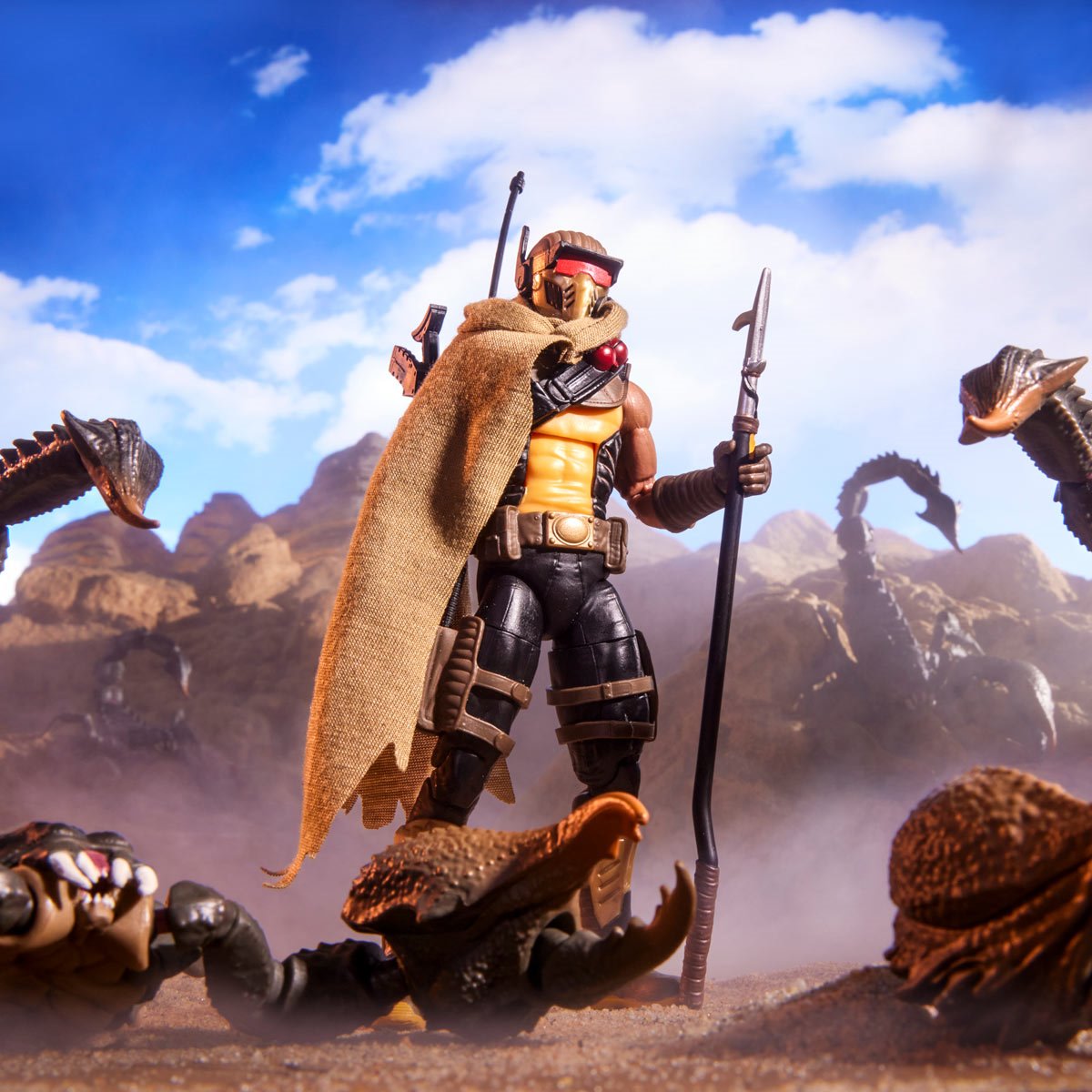 The Cobra Desert Scorpion & SKRP10N-25 pet come ready for adventure, with multiple points of articulation for high poseability. This Cobra Desert Scorpion figure contains 12 character-inspired accessory pieces including swapable faceplate for multiple looks, backpack with connecting cord, 2 knives, grapple launcher with removable hook and attached line, scorpion prod, 2 claws, and weapon accessories; plus softgoods cape and helmet skirt. SKRP10N-25 is a fully articulated colossal pet with massive claw pincers and unattached tail piece. Ages 4 and up.