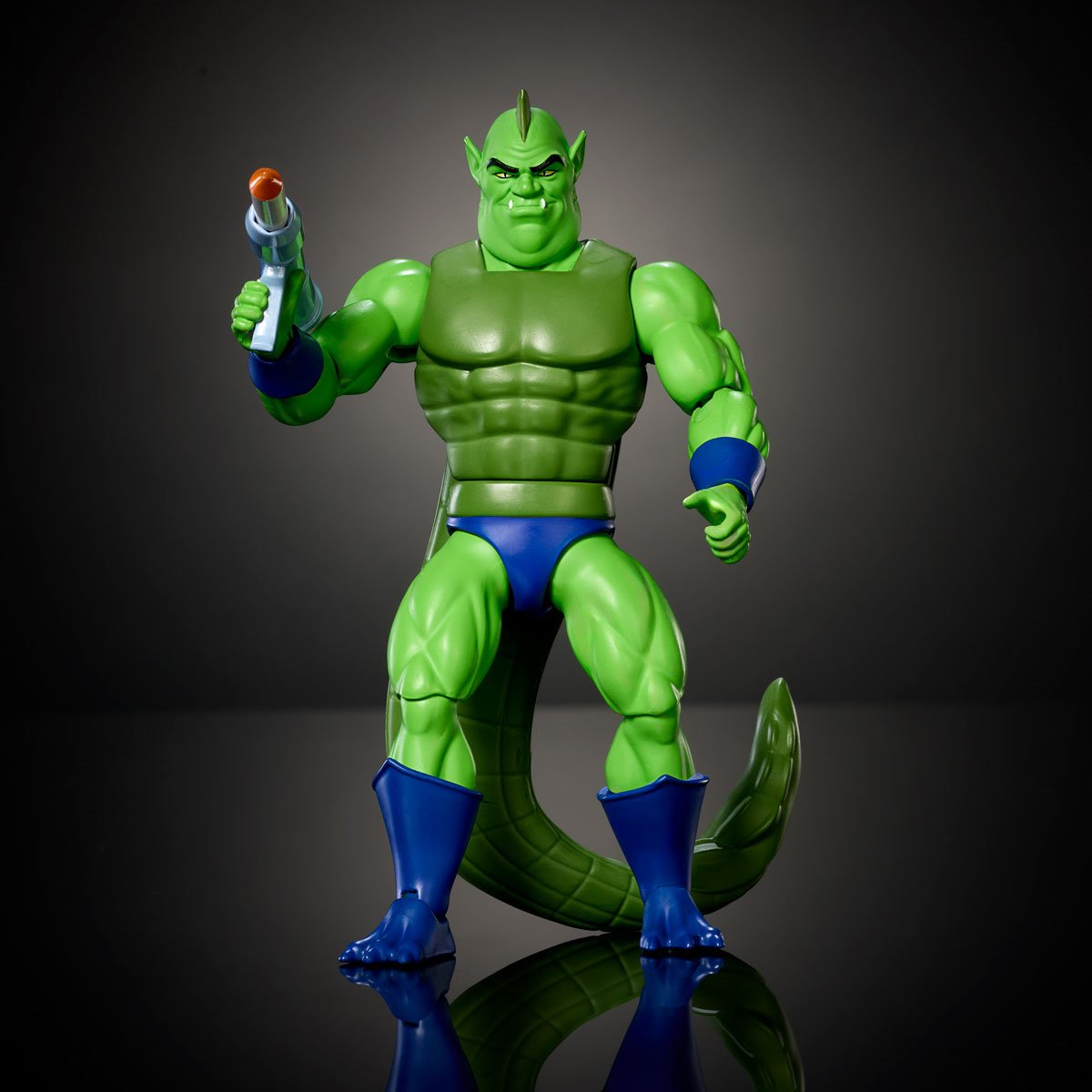 This Masters of the Universe Origins Whiplash action figure joins the Cartoon Collection and is inspired by the original He-Man and the Masters of the Universe TV series from the ’80s. The human-like reptilian creature has a vintage look at 5 1/2-inch scale, but with the modern posability of 16 movable joints. This MOTU Evil Warrior comes with a Rocket Launcher accessory inspired by the episode “The Betrayal of Stratos”. A mini-comic is included for story context. This figure will complement any MOTU Origins collection; suitable for fans 6 years and older. Packed on a blister card.