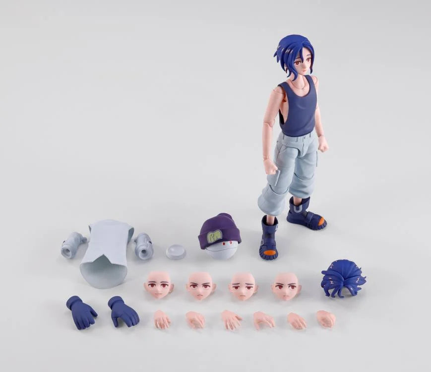 Shuji Ito from Mobile Suit Gundam GQuuuuuX joins the S.H.Figuarts series! The figure comes with a replaceable hairstyle, and can be posed in either a tank top or a white shirt! A knit hat-wearing Haro is also included, allowing you to recreate the world of GQuuuuuuX in more ways than one! THis figure includes a main body, 6x interchangeable wrist parts (3 types each for left and right), 4x types of interchangeable facial parts, 1x set of interchangeable hairstyle parts, replacement shirt parts set, glove parts left and right, joint parts, Haro (with hat), and Haro stand. This figure measures approximately 5 1/3-inches tall.