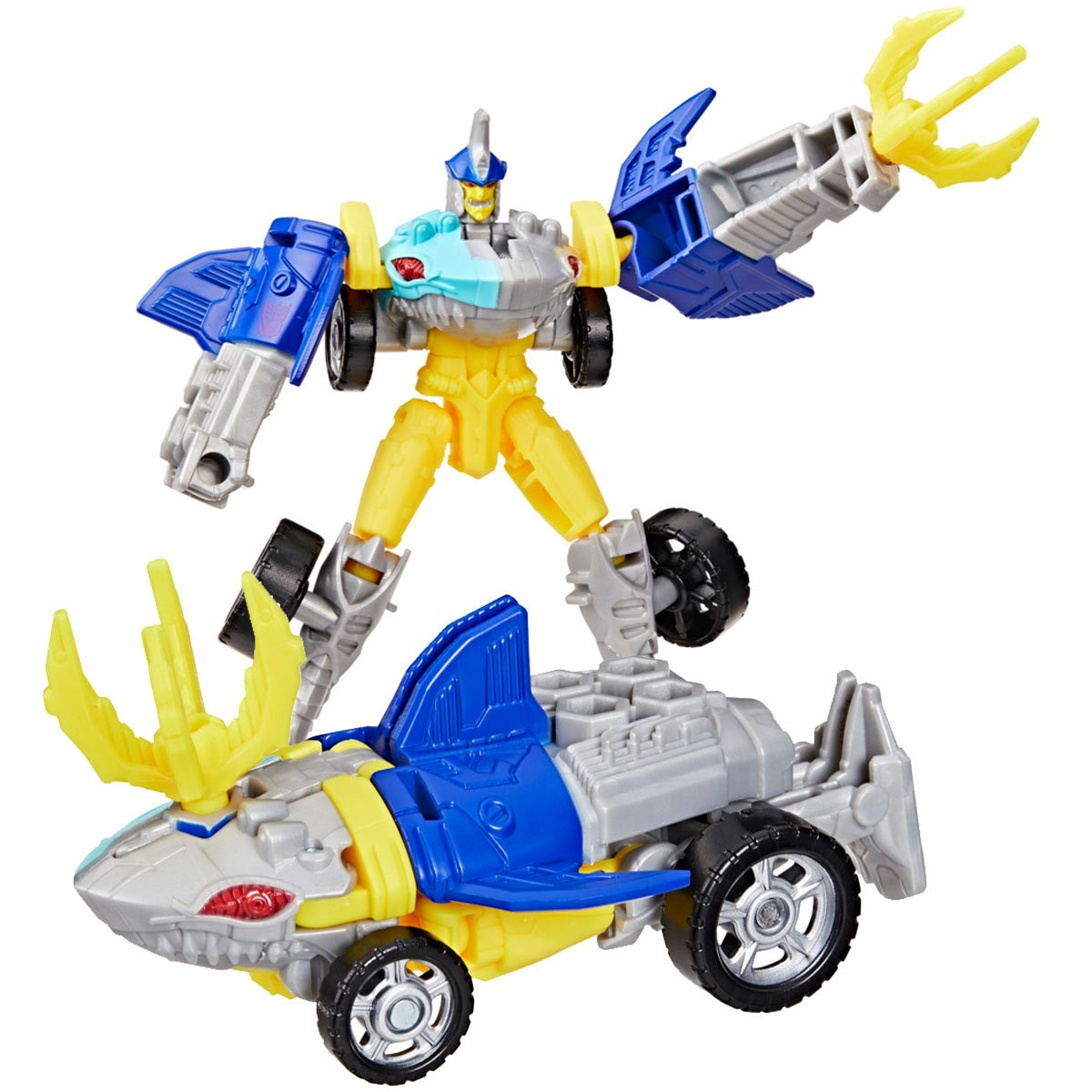 In Transformers Cyberworld, kids decide what happens — and it starts with awesome toys like the Sky-Byte Cyber Changers figure. This 4-inch (10 cm) Sky-Byte toy changes from robot to shark vehicle mode in just 4 steps that are simple enough for kids ages 6 and up. Give kids' storytelling power a boost with additional Cyberworld toys (each sold separately, subject to availability), and discover unique characters, alt modes, environments, and more. Fans of Transformers collectibles and newcomers alike will love discovering this take on the Transformers universe, where the only constant is change. Ages 6 and up.