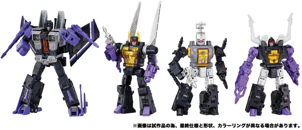 The sixth installment in the popular Dramatic Capture Series is "Decepticons Part 2," a set featuring the Decepticon elite: Skywarp, Kickback, Shrapnel, and Bombshell.