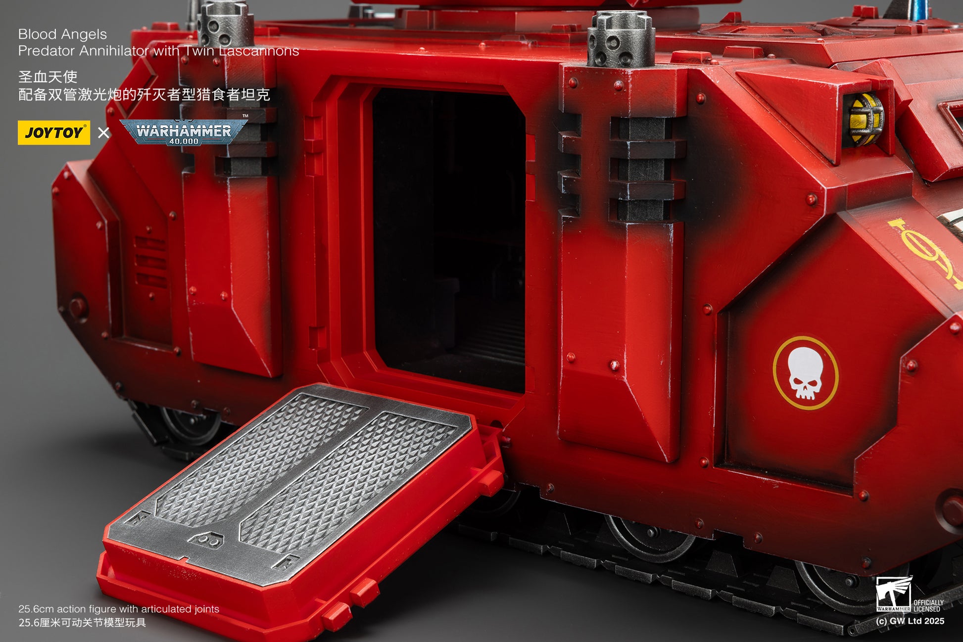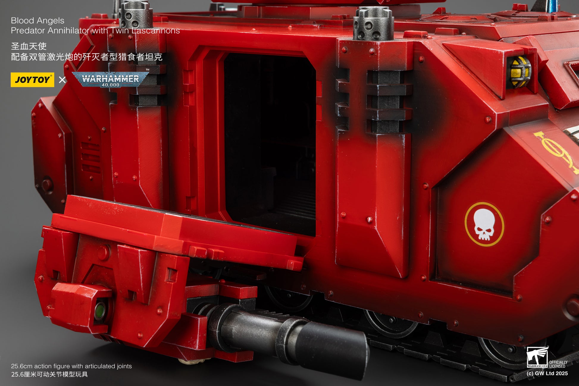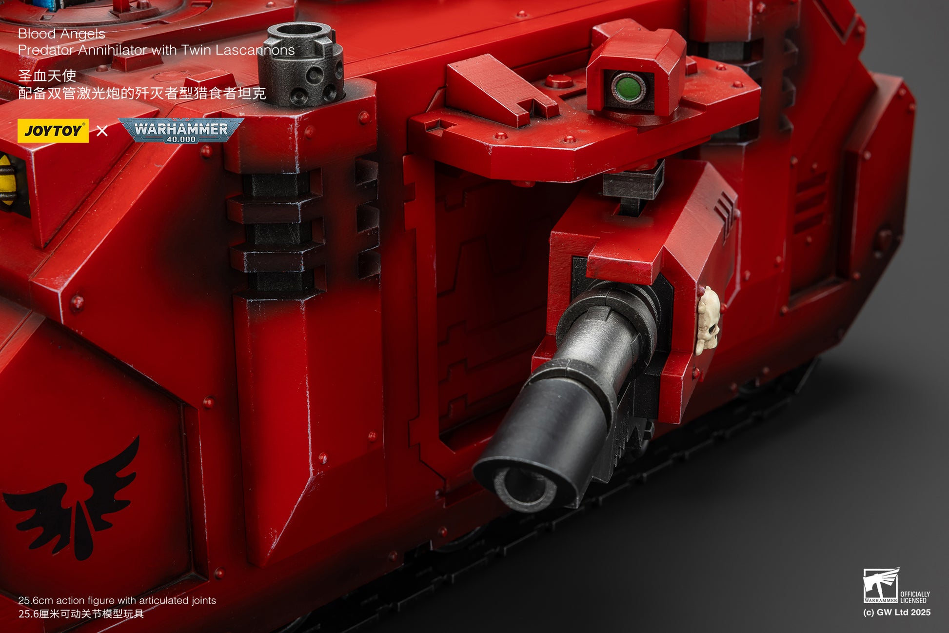 Joy Toy presents the Warhammer 40,000 Blood Angels Predator Annihilator with Twin Lascannons 1:18 Scale Action Figure. Unleash devastating firepower with JoyToy's Blood Angels Predator Annihilator with Twin Lascannons. This highly detailed, collectible figure brings the iconic Warhammer 40K vehicle to life, featuring intricate design, authentic Blood Angels iconography, and powerful twin lascannons-perfect for any fan or collector of the Imperium's elite Space Marines.