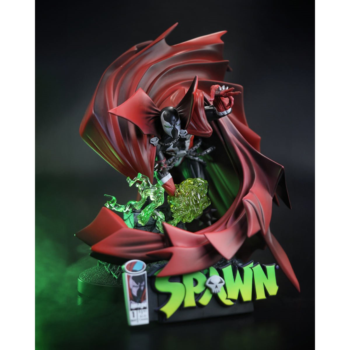 While a strange assailant stalks the city, ripping out human hearts, another otherworldly being arrives. As his mind reels, our tortured hero remembers that he struck a deal with the devil in order to return to his beloved wife - five years after his death. This incredible statue is inspired by the historic Spawn #1 cover artwork by Todd McFarlane and stands approximately 10-inches tall. Made of polyresin, this limited-edition Spawn #1 Black, White, and Red All Over 1:10 Scale Resin Statue is hand-numbered on the base. Includes Todd McFarlane hand-signed scroll stand for display with the statue.