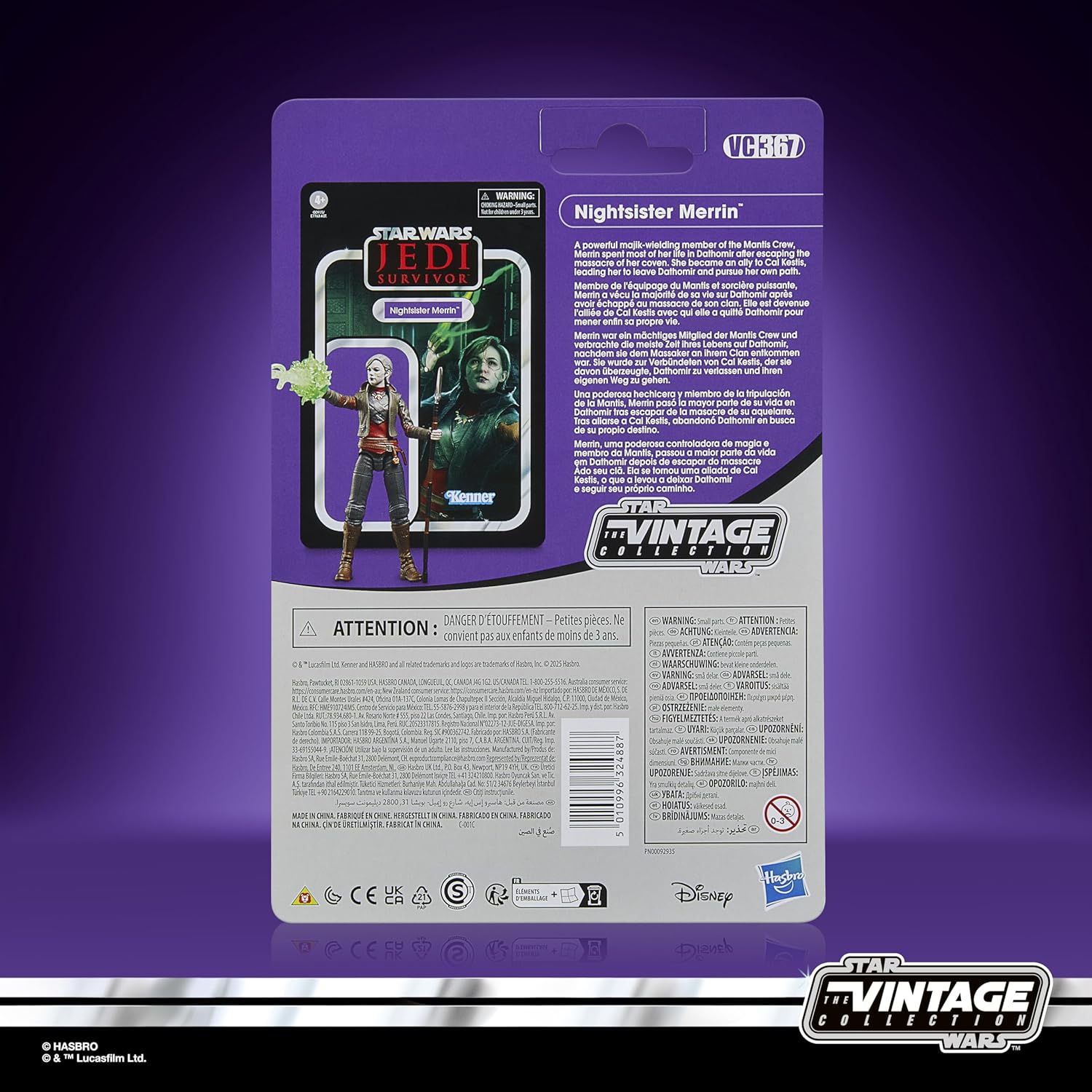Celebrate the legacy of Star Wars with premium vehicles, playsets, and action figures from Star Wars The Vintage Collection. (Additional products each sold separately. Subject to availability.) Based on Nightsister Merrin from Star Wars Jedi: Survivor, this 3.75-inch-scale figure makes a great addition to any fan’s collection. Inspired by the original line, these collectibles feature premium detail and design across product and packaging, as well as collector-grade deco that fans have come to know and love. May the Force be with you! Star Wars products are produced by Hasbro under license from Lucasfilm Ltd HASBRO and all related trademarks and logos are trademarks of Hasbro, Inc.