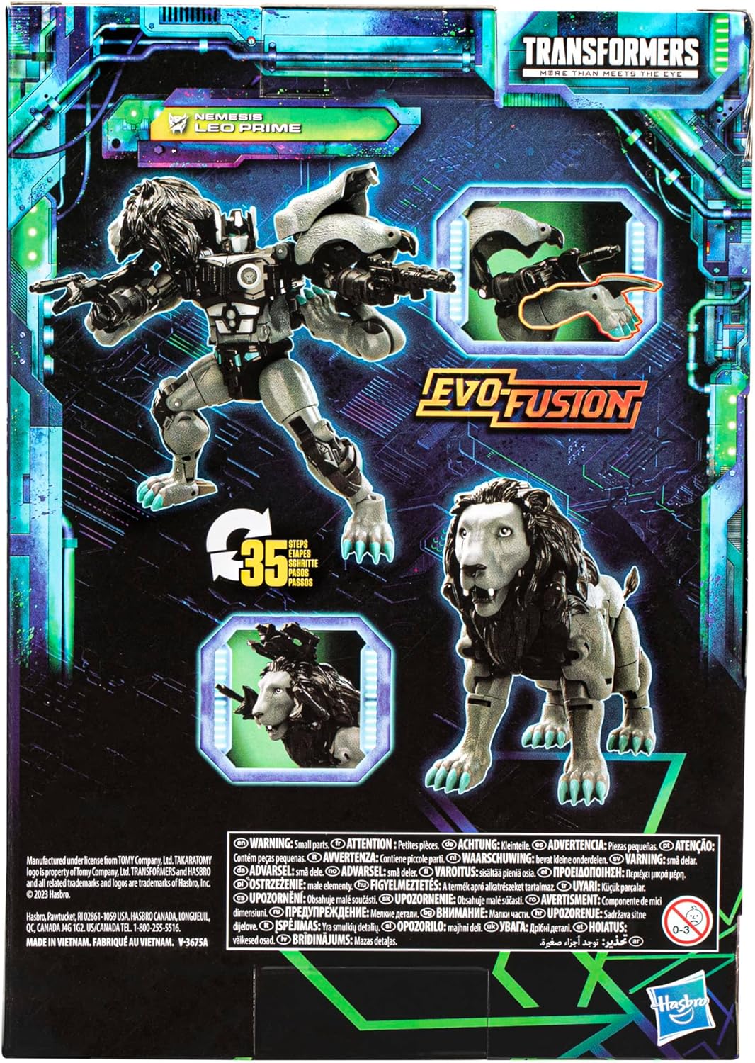 The battle is evolving with the Transformers Legacy Evolution Nemesis Leo Prime action figure! Nemesis Leo Prime has an intense arrogance that drives his goal to replace the Maximals with duplicates that he can command. Transformers toys are upgraded with Evo-Fusion technology! Experience the evolution and flip out the claw blade features from both lion paws to prepare for battle! Celebrate the last 40 years of Transformers history with Transformers Legacy action figures for boys and girls. Transformers Legacy opens the portal to a whole new universe of -- More Than Meets the Eye -- bringing together every generation of Transformers like you’ve never seen before. Collect and combine different characters to create your ideal Legacy lineup. Transformers and all related characters are trademarks of Hasbro. Hasbro and all related terms are trademarks of Hasbro.